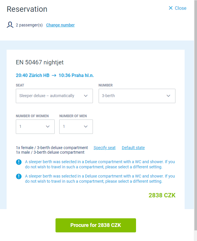 Sleeper deluxe-automatically 선택, 3-berth 선택 후