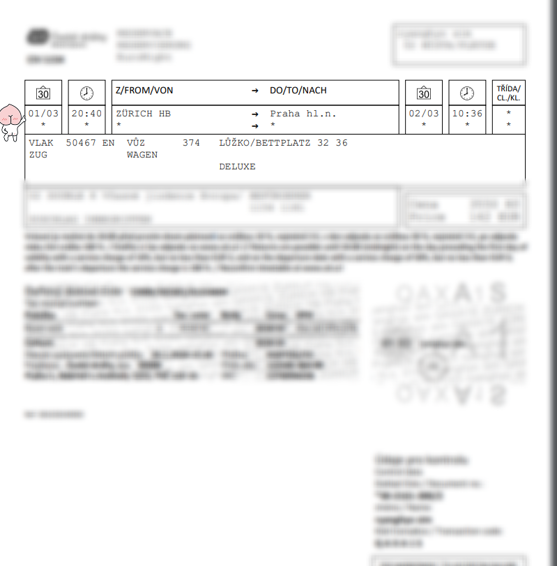 스위스(취리히) > 체코(프라하) 하는 야간열차에 대해 작성해보았습니다.