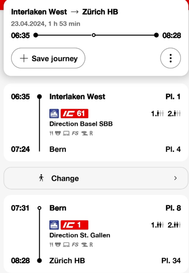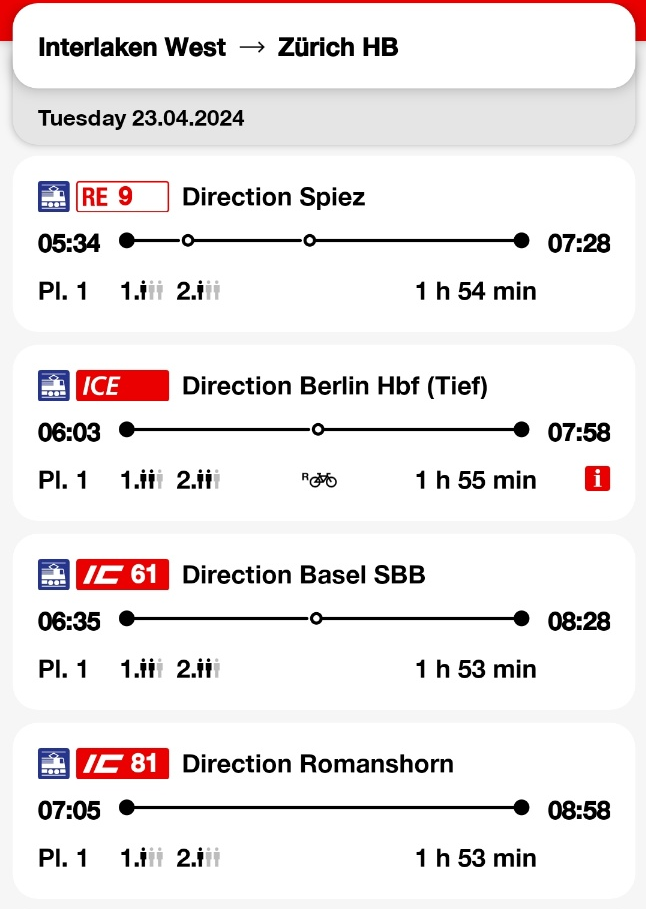 인터라켄 서역에서 취리히 HB로 향했습니다.