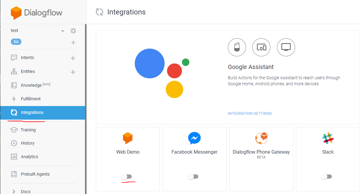방법 1. dialogflow에서 제공