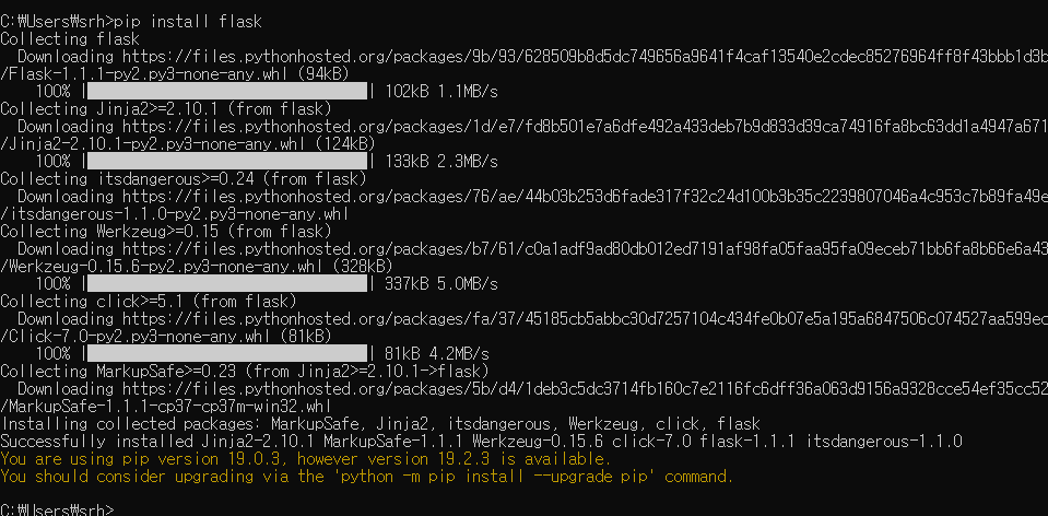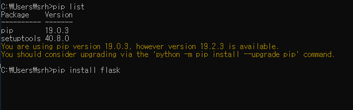 명령어 : pip install flask