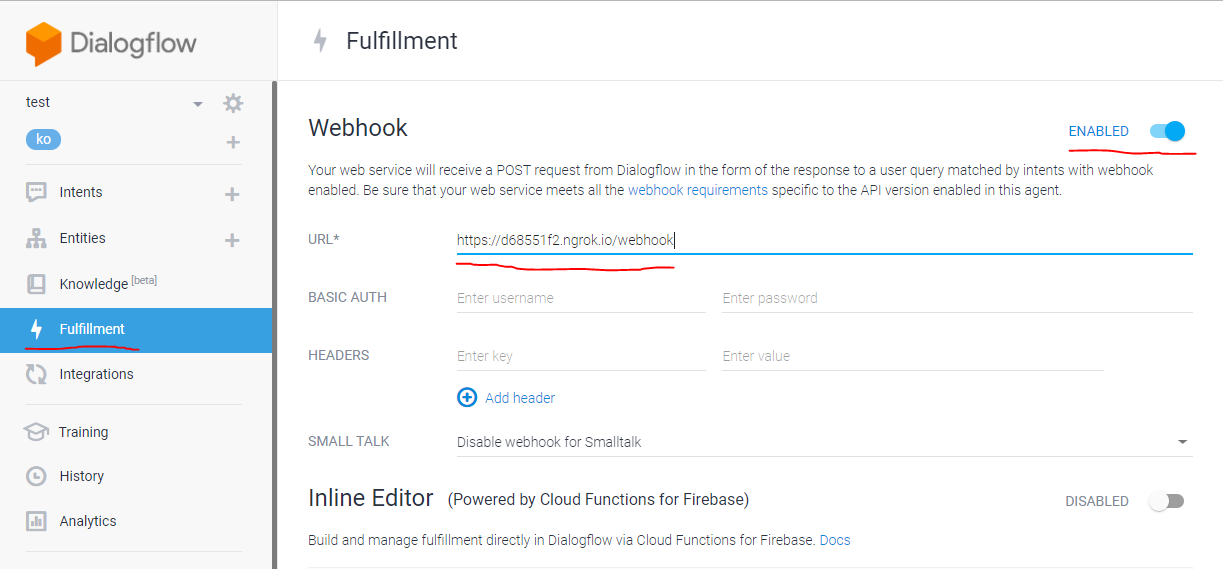 4. dialogflow webhook 사용하기